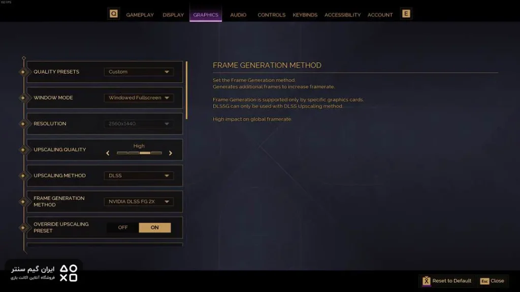 - Fullscreen: Borderless (در صورت تمایل میتوانید Fullscreen را نیز انتخاب کنید)