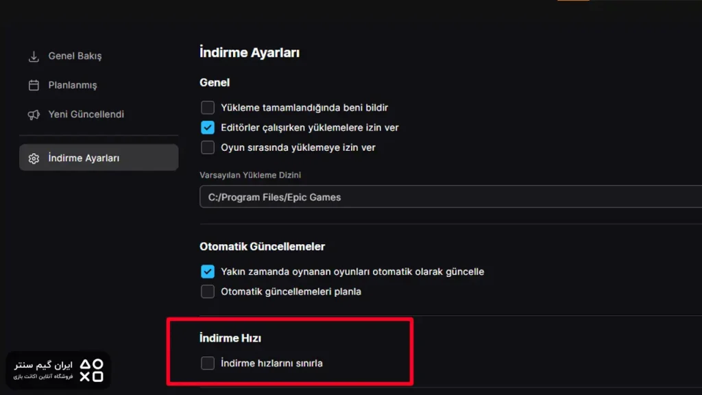 بسیاری از کاربران Epic Games نمیدانند که یک تنظیم سرعت دانلود درون برنامهای وجود دارد. در بخش تنظیمات داخل Epic Games Launcher، قسمتی وجود دارد که میتوانیم سرعت دانلود را به صورت دستی تنظیم کنیم. لطفاً این متن ترکی را به فارسی ترجمه کن و ساختار و جزییات markdown حفظ شود. موارد فوق را رعایت کن: